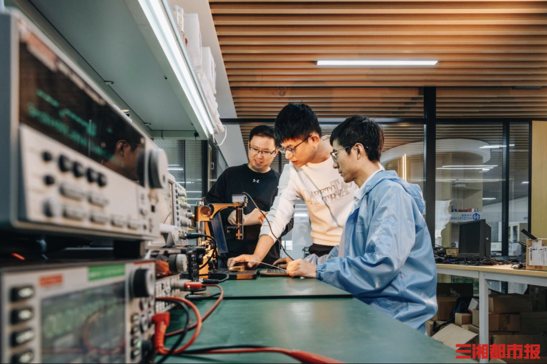 (中南鴻思自動化科技有限公司三位創始人正在開展技術研發。)